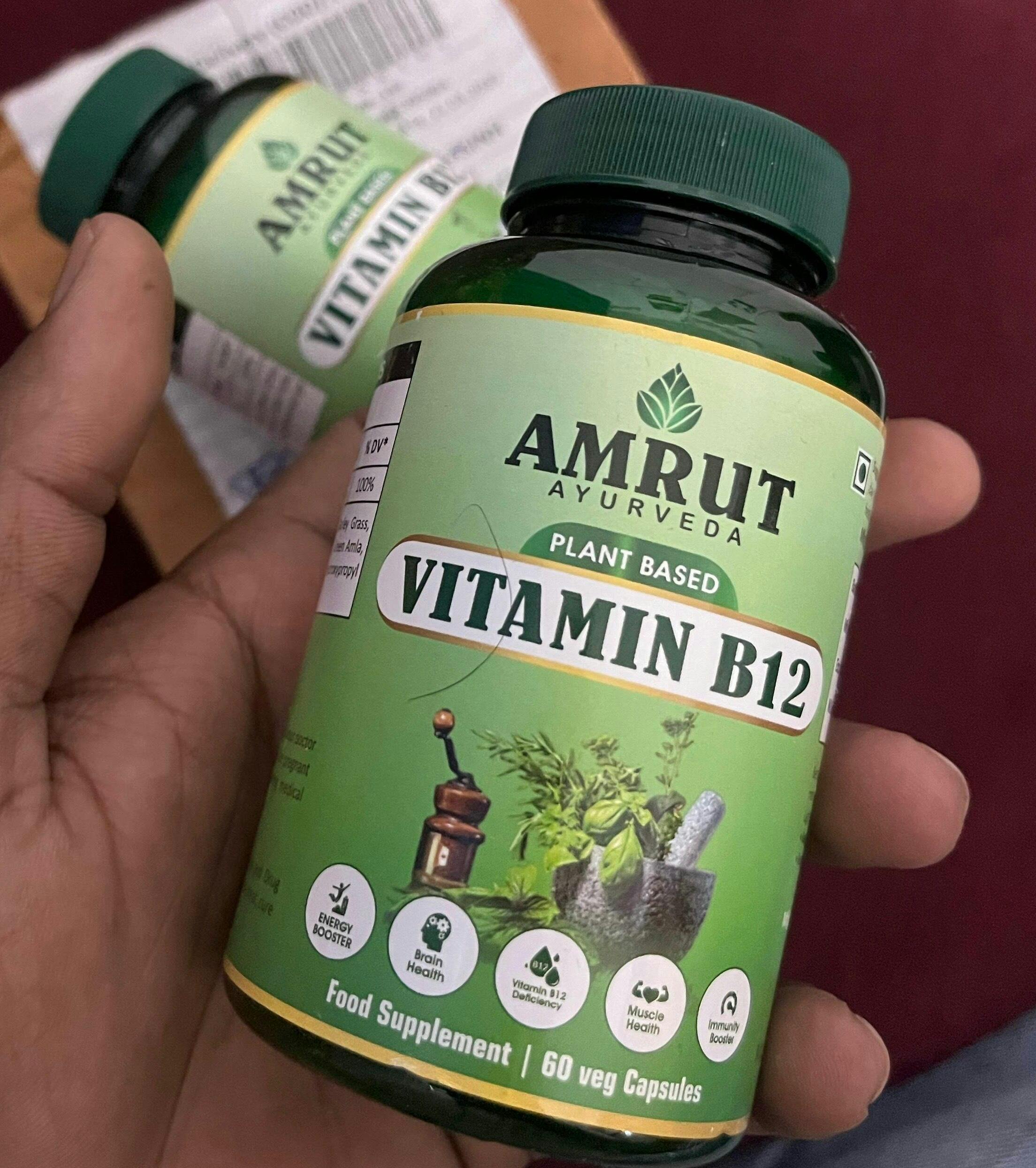 Boost your energy and vitality with Amrut Ayurveda's premium Vitamin B12 supplement. Our meticulously crafted formula is designed to support your overall health and well-being. Vitamin B12 is essential for maintaining healthy nerve cells, producing DNA, and ensuring optimal brain function.